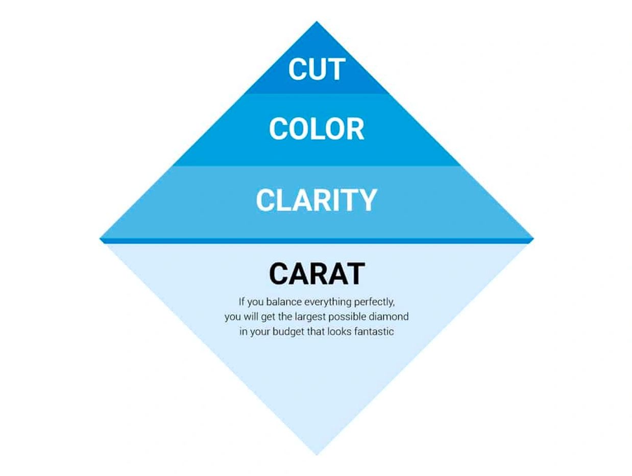 The cut of a diamond refers to how well it has been shaped and faceted, and it affects how light reflects and disperses within the stone. It is the most important factor for determining a diamond's overall beauty. A well-cut diamond will sparkle more. The cut grade includes the proportions, symmetry, and polish of the diamond. The quality of the cut can range from Poor to Excellent.